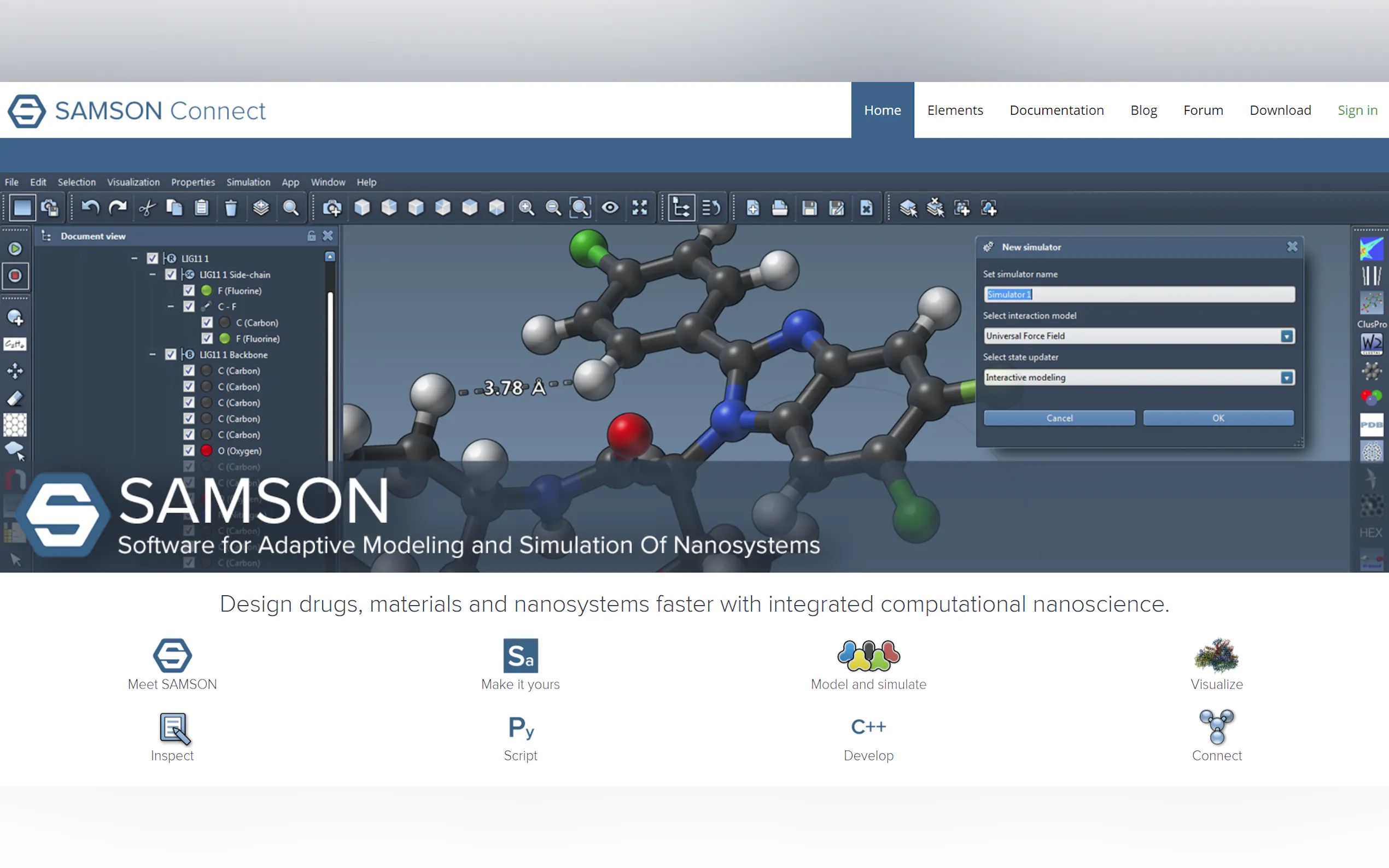 Accelerating Scientific Innovation with SAMSON SAMSON is an innovative computational nanoscience platform that empowers users to accelerate the process of designing drugs, materials, and nanosystems. This cutting-edge tool enables scientists to explore various applications across medicine, energy, electronics, and education.
